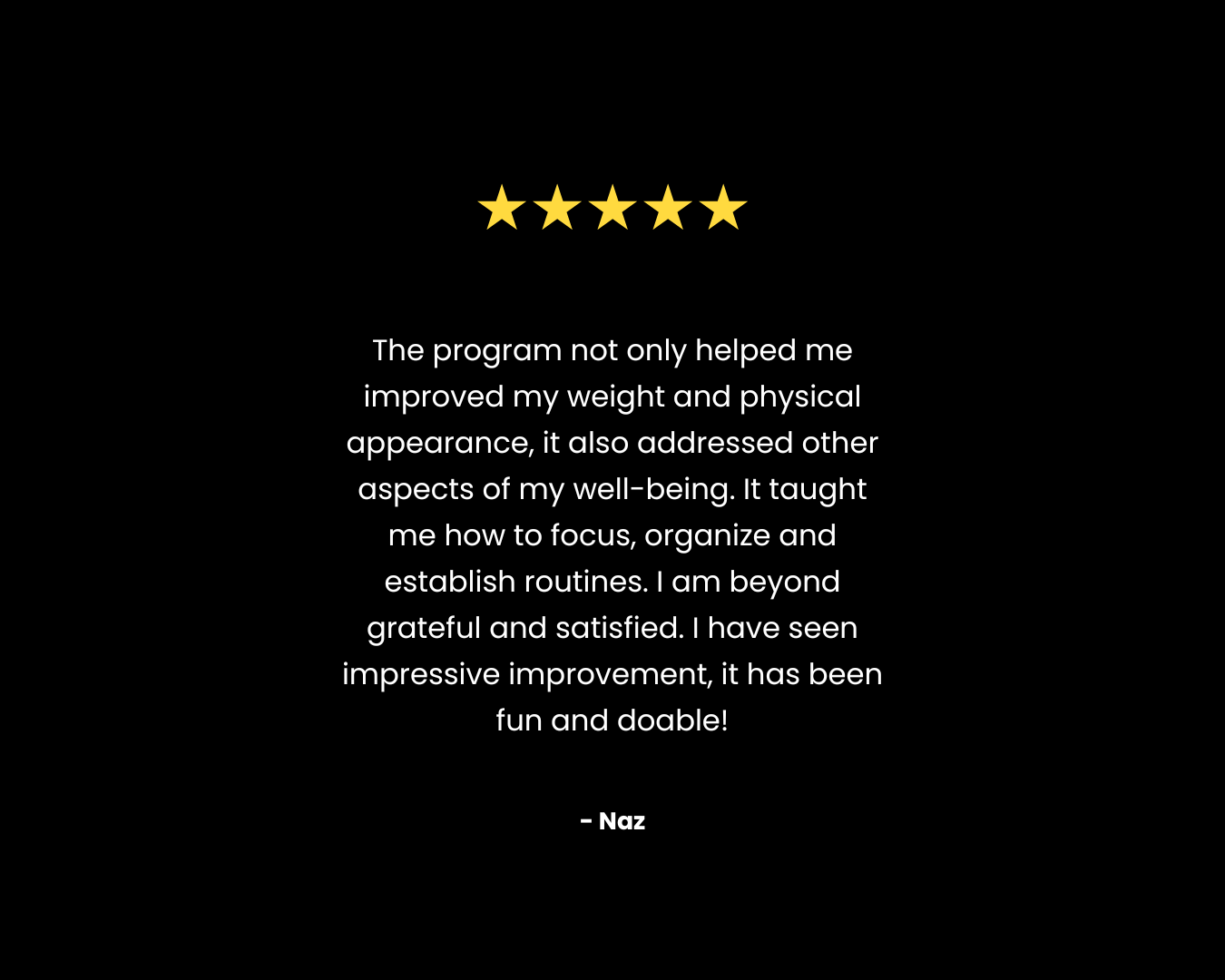 Not at all. My Framework is designed to meet you where you are. Whether you’re looking to lose 20lbs or build your first 5lbs of muscle, the principles remain the same. Plus, doing this alongside a judgement-free space makes the journey 10x more enjoyable