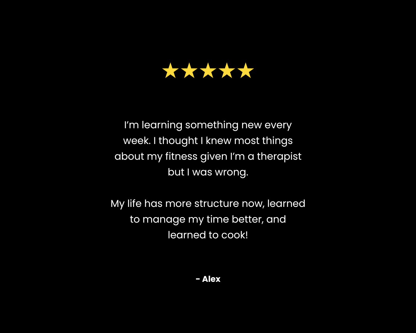 Most coaches sell you "workouts" or “programs”. I don't just give you a workout; we install the habits, nutrition science, and psychological tools you need to sculpt your body to align with your identity and keep it for life. By the end of us working together, you won't just have a transformed body, you'll have the independent knowledge to never have to "start over" again. I’ll be the last coach you will ever need to hire.
